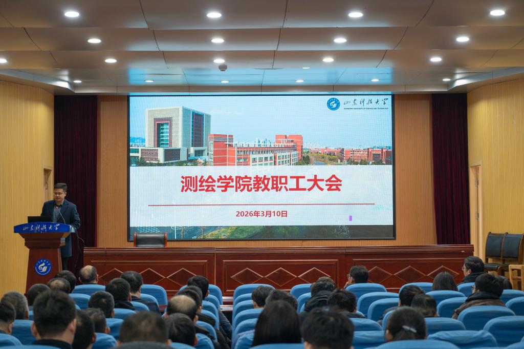 3月10日,测绘学院于J6-434报告厅召开2026年春季学期教职工大会。学院领导班子、全体教职工参加了本次会议。会上,院长涂锐传达了学校新学期工作部署会议精神,全面总结了学院“十四五”期间在党建、教育教学、学科建设、师资队伍建设、科学研究、社会服务及对外交流等方面取得的成就,分析了当前发展中存在的问题和不足,展望了“十五五”期间的学院发展蓝图,并对学院2026年的重点工作进行了具体安排。他强调,各部门要围绕学...