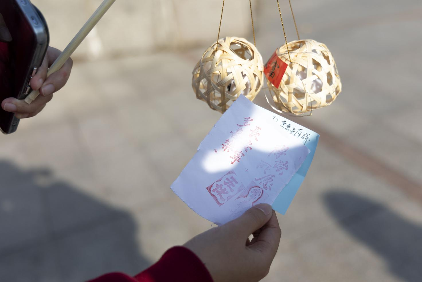 活动设置妙手编灯、你画我猜、祝福盲盒、巧折纸鸢四大特色环节。编灯区内,同学们跟随志愿者学习“井字锁篾法”,亲手制作60盏茱萸灯并题写祝福;你画我猜环节以重阳民俗为关键词,让同学们在欢笑声中熟悉登高、佩茱萸等古老习俗;祝福盲盒通过“抽取—赠予”的双向互动,传递陌生人间的温情;巧折纸鸢环节里,同学们写下对长辈的祈愿,在夕阳下放飞思念。