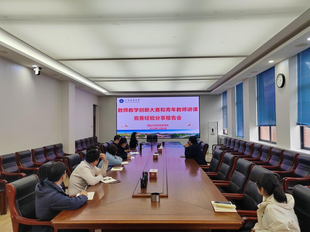 2025年11月6日下午,测绘学院在第一会议室举办“教学创新大赛与青年教师讲课竞赛经验分享报告会”。会议邀请山东省高校教师教学创新大赛二等奖获得者战丽丽、全国高校GIS青年教师讲课竞赛特等奖获得者信睿担任主讲,学院青年教师及教学骨干代表参会,刘尚国副院长主持。 战丽丽以“以赛促教 强基提质”为主题,系统梳理全国高校教师教学创新大赛五届赛制特点,围绕教学系统化设计、课程内涵重构、教学模式创新、评价体系构建四...