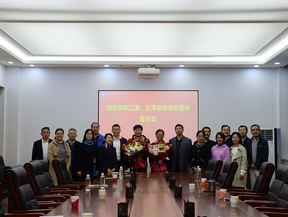 近日,测绘学院举行江涛老师、王萍老师光荣退休座谈会。学院党委书记秦昌盛、院长阳凡林、党委副书记兼副院长吴昊、退休教师及部分教师代表参加了座谈会。