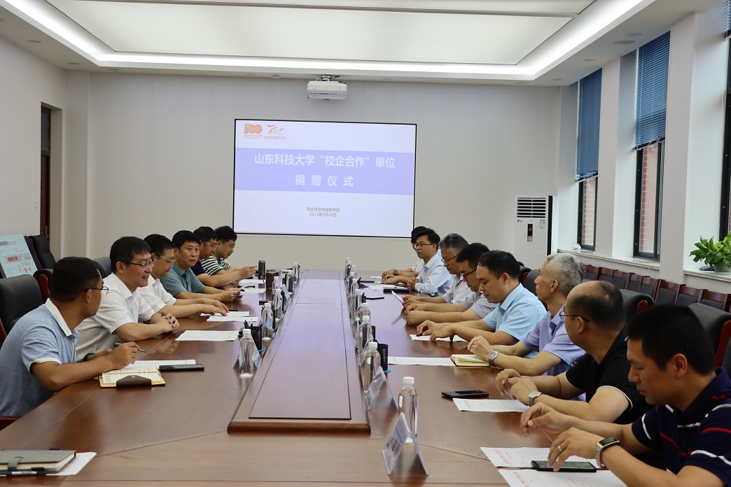 8月20日,山东科技大学“校企合作”单位捐赠仪式于测绘学院第一会议室举行,校党委副书记尹华会见客人一行并座谈交流。仪式由合作发展处处长王晓东主持,测绘学院相关主要负责人参加了活动。