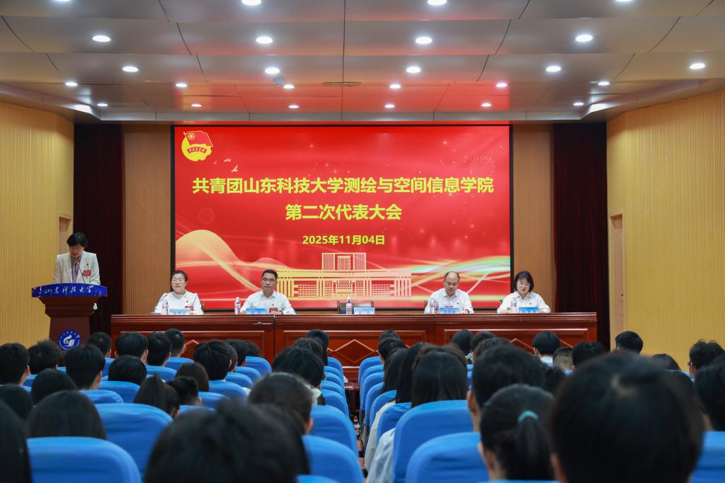 2025年11月4日,共青团山东科技大学测绘与空间信息学院第二次代表大会在J6-434报告厅隆重召开!校团委书记高一丹,测绘学院党委书记范俊峰、党委副书记兼副院长吴昊出席会议。学院全体代表参加会议,共同见证这场凝聚青年力量、擘画发展蓝图的重要盛会。