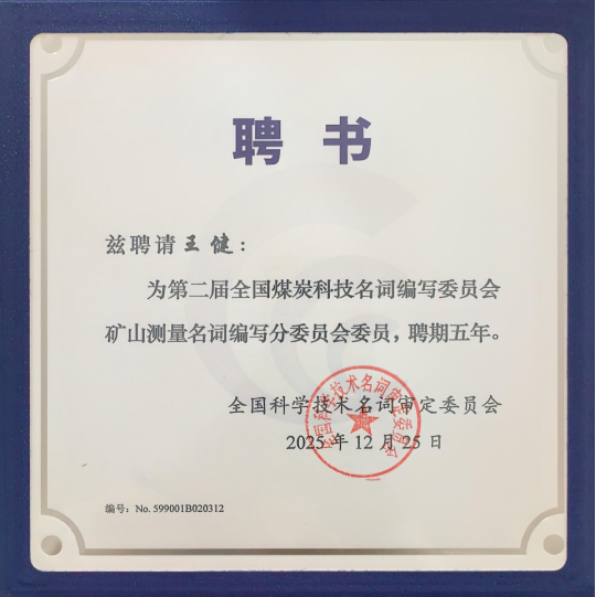 2025年12月25日,第二届全国煤炭科技名词审定委员会矿山测量分委员会编审工作启动会在北京召开。会上宣读了第二届矿山测量分委员会编审委员名单,我院王健教授获聘担任矿山测量审定分委会委员。