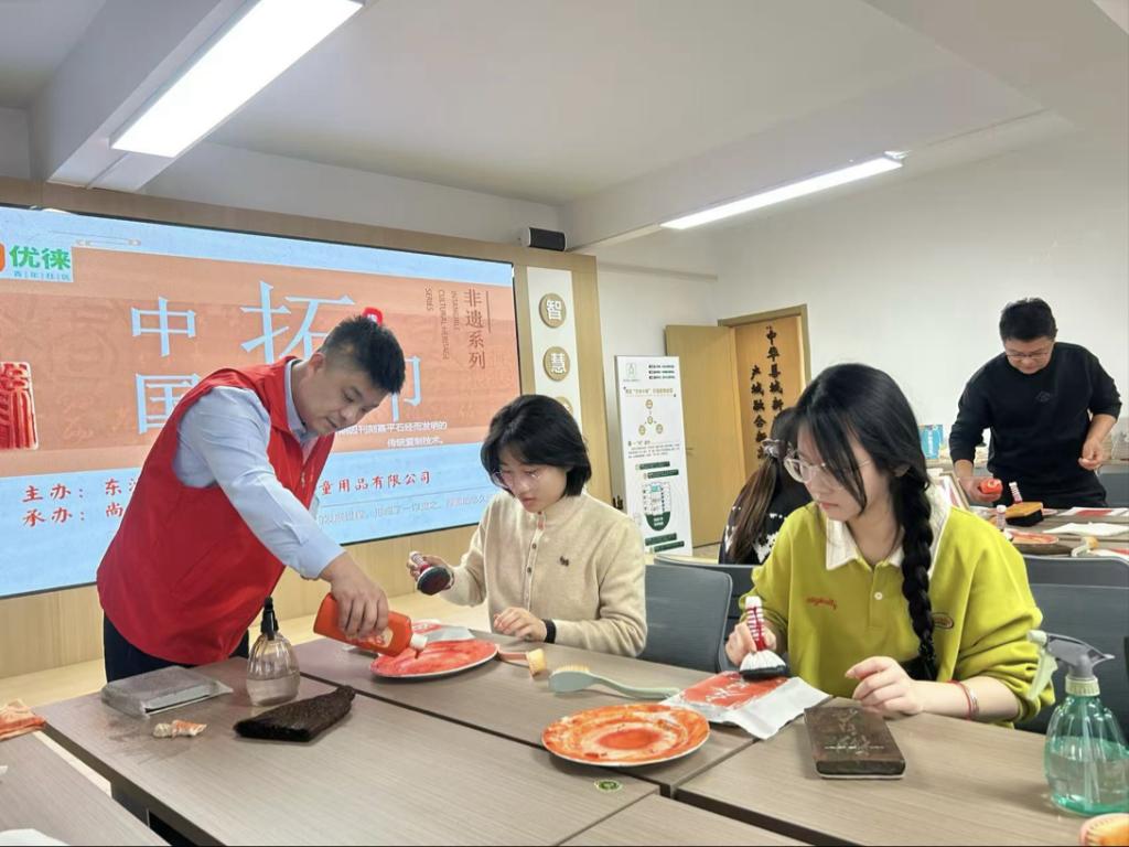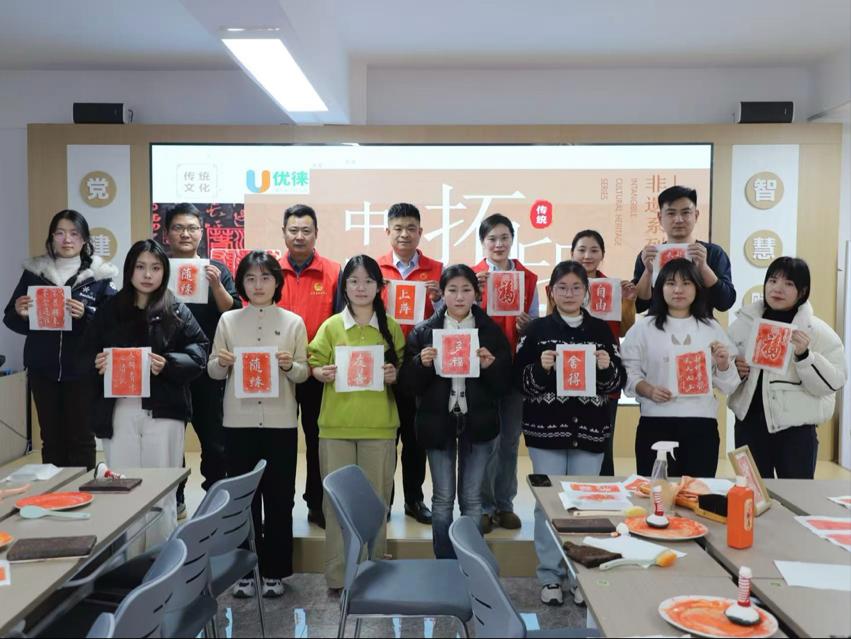 我先后参与了街道组织的非遗拓印与刺绣等活动,在指尖流转间触摸家乡文化根脉。拓印时,从初执工具的生疏摸索,到熟练铺展宣纸、匀调墨汁的从容,当古朴纹样在宣纸上渐次浮现,心中满溢对传统文化的敬畏与自豪;刺绣之际,丝线在素色布料上交织缠绕,一针一线皆藏匠心,让我读懂了家乡文化底蕴中温润坚韧的力量。此外,我亦全程投身“暖冬行动”的筹备与服务,为滕州东站返乡旅客筑牢冬日温暖防线。我们提前摸排客流高峰、筹备热水与暖宝宝等物资,反复演练服务流程。这也是志愿服务双向奔赴的温暖真谛,让我们通过切实行动,把家乡温情传递给每一位返乡人。