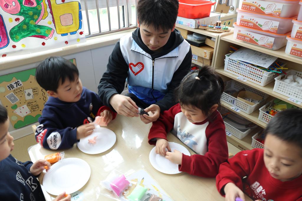 作为本次活动的核心环节,情绪脸谱手工制作成为孩子们感知情绪、表达自我的重要载体。志愿者为孩子们分发纸盘、超轻粘土、彩笔等手工材料,耐心讲解喜怒哀乐等基本情绪的外在表现,手把手指导孩子们用粘土捏塑五官、搭配色彩,将抽象无形的情绪转化为可触摸、可感知的手工作品。创作过程中,孩子们全身心投入,根据自己的理解大胆构思、自由创作,用鲜艳的色彩勾勒开心的笑脸,用低垂的眉眼塑造难过的神情,在动手实践中慢慢觉察自身情绪、接纳不同心境。志愿者还在旁轻声引导孩子们分享自己的创作想法,说说“什么时候会开心”“难过了该怎么办”,让孩子们在轻松的互动中掌握情绪识别与表达的基本方法,学会与情绪友好相处。这场手工创作不仅锻炼了孩子们的动手能力与想象力,更通过手眼协同的操作提升了专注力,让孩子们在沉浸式体验中释放内心感受,在完成作品的成就感中建立自信,真正实现以手工疗愈心灵的效果,现场欢声笑语不断,暖意融融。